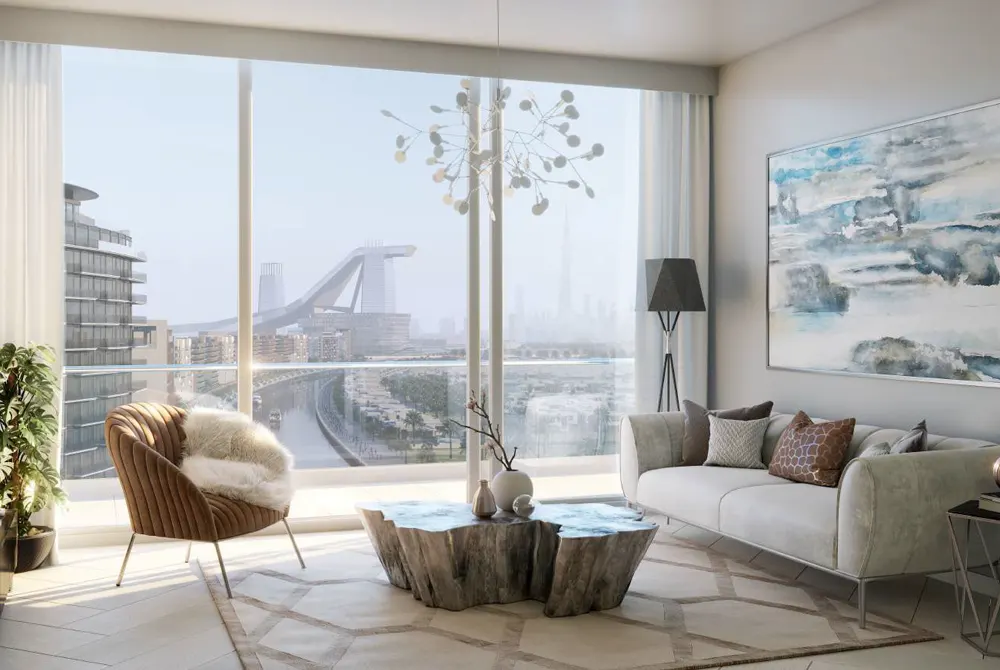 Rising gracefully in the heart of the Riviera community, the development showcases contemporary architecture defined by clean lines, expansive glass balconies, and thoughtfully proportioned spaces. The design allows natural light to flow seamlessly through the residences, creating bright and welcoming interiors while framing picturesque views of landscaped gardens, serene lagoons, and the surrounding cityscape.